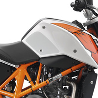 Eazi-Grip PRO - the non-abrasive high performance tank grips KTM 690 Duke / R PRO Tank Grips includes Tank Grips, left and right side, clear IPA cleaner Fitting Instructions Manufactured in the UK from high quality polyurethane, these traction pads are designed to be applied to the fuel tank recesses next to the riders knees and come pre-cut to size. High quality polyurethane with low profile, circular embossed surface Provides outstanding feel and movement but with superior grip when needed Suitable for race, track days and more enthusiastic road riders Non-abrasive - kind to riders leathers Cut to size - quick and easy to apply - instructions and IPA surface cleaner provided Road and track use only - not suitable for off-road use Application Peel back part of the release liner then press the tank grip firmly onto the tank and slowly peel back the liner whilst applying the grip. Push down the surface and take care not to trap air bubbles as you go. Allow 48 hours for the adhesive to fully bond before using the grips. Use an IPA cleaner to prepare surface area NO methylated spirits/petrol/lighter fluid etc. as these leave behind a thin, greasy residue. For best results ensure prepared surface is above 10oC. Also available from our store - Eazi-Grip EVO Tank Grips Eazi-Grip EVO tank grips have a soft but durable domed surface that is very easy to grip, giving the rider increased control with minimal effort, thereby reducing fatigue and and reducing wear to the riders leathers or clothing. Eazi-Grip EVO Tank Grips tend to suit the less aggressive rider (primarily road and occassional track use) and are a great alternative to more abrasive, higher priced tank grips available on the market. Designed, developed and manufactured in the U.K. Hint: Black grips look better than clear on a black tank, where clear grips can appear a little blue. Black grips can also look better than clear on a pure white tank, where clear grips can appear a little yellow. Clear grips are optimised for colours other than black and pure white. NB. Clear grips are supplied with a pink-coloured adhesive liner which makes the grips appear pink until the liner is removed. Suitable for KTM 690 Duke / R 2011 - 2018 models only Part No. PRO504CL