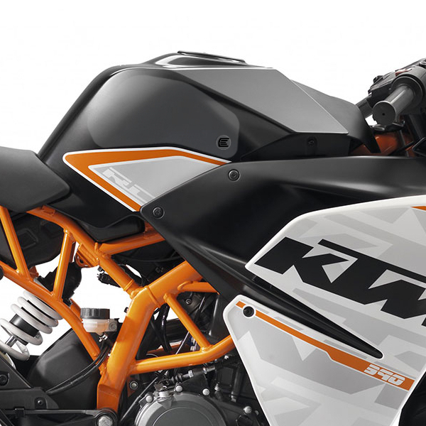 Eazi-Grip PRO - the non-abrasive high performance tank grips KTM RC125, 200 and 390 PRO Tank Grips includes Tank Grips, left and right side, clear IPA cleaner Fitting Instructions Manufactured in the UK from high quality polyurethane, these traction pads are designed to be applied to the fuel tank recesses next to the riders knees and come pre-cut to size. High quality polyurethane with low profile, circular embossed surface Provides outstanding feel and movement but with superior grip when needed Suitable for race, track days and more enthusiastic road riders Non-abrasive - kind to riders leathers Cut to size - quick and easy to apply - instructions and IPA surface cleaner provided Road and track use only - not suitable for off-road use Application Peel back part of the release liner then press the tank grip firmly onto the tank and slowly peel back the liner whilst applying the grip. Push down the surface and take care not to trap air bubbles as you go. Allow 48 hours for the adhesive to fully bond before using the grips. Use an IPA cleaner to prepare surface area NO methylated spirits/petrol/lighter fluid etc. as these leave behind a thin, greasy residue. For best results ensure prepared surface is above 10oC. Also available from our store - Eazi-Grip EVO Tank Grips Eazi-Grip EVO tank grips have a soft but durable domed surface that is very easy to grip, giving the rider increased control with minimal effort, thereby reducing fatigue and and reducing wear to the riders leathers or clothing. Eazi-Grip EVO Tank Grips tend to suit the less aggressive rider (primarily road and occassional track use) and are a great alternative to more abrasive, higher priced tank grips available on the market. Designed, developed and manufactured in the U.K. Hint: Black grips look better than clear on a black tank, where clear grips can appear a little blue. Black grips can also look better than clear on a pure white tank, where clear grips can appear a little yellow. Clear grips are optimised for colours other than black and pure white. NB. Clear grips are supplied with a pink-coloured adhesive liner which makes the grips appear pink until the liner is removed. Suitable for KTM RC125 RC200 and RC390 2014 - current models only Part No. PRO508CL