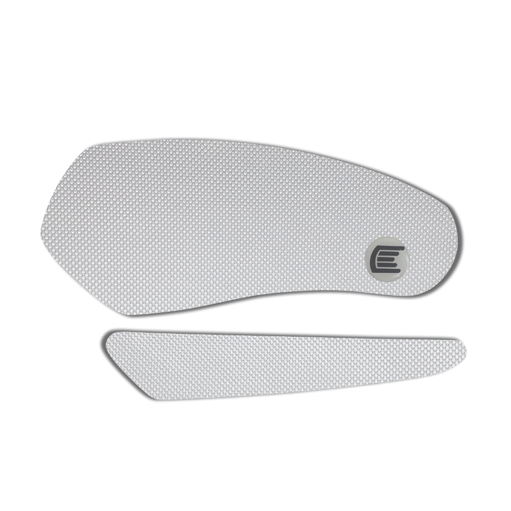 Eazi-Grip PRO - the non-abrasive high performance tank grips MV Agusta F4 / R / RR PRO Tank Grips includes Tank Grips, left and right side, clear IPA cleaner Fitting Instructions Manufactured in the UK from high quality polyurethane, these traction pads are designed to be applied to the fuel tank recesses next to the riders knees and come pre-cut to size. High quality polyurethane with low profile, circular embossed surface Provides outstanding feel and movement but with superior grip when needed Suitable for race, track days and more enthusiastic road riders Non-abrasive - kind to riders leathers Cut to size - quick and easy to apply - instructions and IPA surface cleaner provided Road and track use only - not suitable for off-road use Application Peel back part of the release liner then press the tank grip firmly onto the tank and slowly peel back the liner whilst applying the grip. Push down the surface and take care not to trap air bubbles as you go. Allow 48 hours for the adhesive to fully bond before using the grips. Use an IPA cleaner to prepare surface area NO methylated spirits/petrol/lighter fluid etc. as these leave behind a thin, greasy residue. For best results ensure prepared surface is above 10oC. Also available from our store - Eazi-Grip EVO Tank Grips Eazi-Grip EVO tank grips have a soft but durable domed surface that is very easy to grip, giving the rider increased control with minimal effort, thereby reducing fatigue and and reducing wear to the riders leathers or clothing. Eazi-Grip EVO Tank Grips tend to suit the less aggressive rider (primarily road and occassional track use) and are a great alternative to more abrasive, higher priced tank grips available on the market. Designed, developed and manufactured in the U.K. Hint: Black grips look better than clear on a black tank, where clear grips can appear a little blue. Black grips can also look better than clear on a pure white tank, where clear grips can appear a little yellow. Clear grips are optimised for colours other than black and pure white. NB. Clear grips are supplied with a pink-coloured adhesive liner which makes the grips appear pink until the liner is removed. Suitable for MV Agusta F4 / R / RR 2010 - current models only Part No. PRO602CL