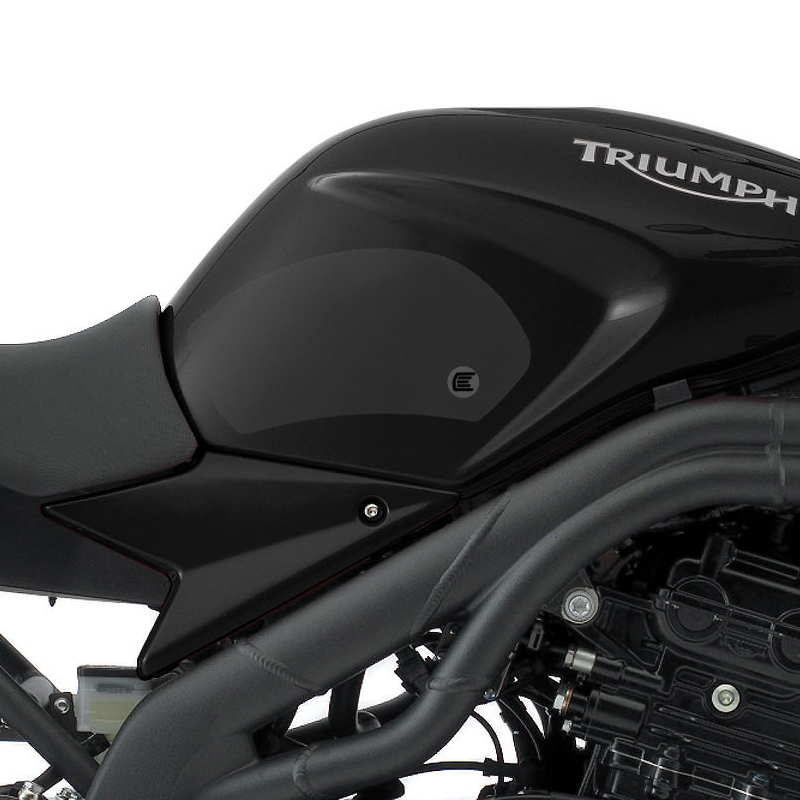 Eazi-Grip PRO - the non-abrasive high performance tank grips Triumph Speed Triple PRO Tank Grips includes Tank Grips, left and right side, clear IPA cleaner Fitting Instructions Manufactured in the UK from high quality polyurethane, these traction pads are designed to be applied to the fuel tank recesses next to the riders knees and come pre-cut to size. High quality polyurethane with low profile, circular embossed surface Provides outstanding feel and movement but with superior grip when needed Suitable for race, track days and more enthusiastic road riders Non-abrasive - kind to riders leathers Cut to size - quick and easy to apply - instructions and IPA surface cleaner provided Road and track use only - not suitable for off-road use Application Peel back part of the release liner then press the tank grip firmly onto the tank and slowly peel back the liner whilst applying the grip. Push down the surface and take care not to trap air bubbles as you go. Allow 48 hours for the adhesive to fully bond before using the grips. Use an IPA cleaner to prepare surface area NO methylated spirits/petrol/lighter fluid etc. as these leave behind a thin, greasy residue. For best results ensure prepared surface is above 10oC. Also available from our store - Eazi-Grip EVO Tank Grips Eazi-Grip EVO tank grips have a soft but durable domed surface that is very easy to grip, giving the rider increased control with minimal effort, thereby reducing fatigue and and reducing wear to the riders leathers or clothing. Eazi-Grip EVO Tank Grips tend to suit the less aggressive rider (primarily road and occassional track use) and are a great alternative to more abrasive, higher priced tank grips available on the market. Designed, developed and manufactured in the U.K. Hint: Black grips look better than clear on a black tank, where clear grips can appear a little blue. Black grips can also look better than clear on a pure white tank, where clear grips can appear a little yellow. Clear grips are optimised for colours other than black and pure white. NB. Clear grips are supplied with a pink-coloured adhesive liner which makes the grips appear pink until the liner is removed. Suitable for Triumph Speed Triple 2005 - 2010 models only Part No. PRO810CL