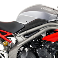 Eazi-Grip PRO - the non-abrasive high performance tank grips Triumph Speed Triple / S / R PRO Tank Grips includes Tank Grips, left and right side, clear IPA cleaner Fitting Instructions Manufactured in the UK from high quality polyurethane, these traction pads are designed to be applied to the fuel tank recesses next to the riders knees and come pre-cut to size. High quality polyurethane with low profile, circular embossed surface Provides outstanding feel and movement but with superior grip when needed Suitable for race, track days and more enthusiastic road riders Non-abrasive - kind to riders leathers Cut to size - quick and easy to apply - instructions and IPA surface cleaner provided Road and track use only - not suitable for off-road use Application Peel back part of the release liner then press the tank grip firmly onto the tank and slowly peel back the liner whilst applying the grip. Push down the surface and take care not to trap air bubbles as you go. Allow 48 hours for the adhesive to fully bond before using the grips. Use an IPA cleaner to prepare surface area NO methylated spirits/petrol/lighter fluid etc. as these leave behind a thin, greasy residue. For best results ensure prepared surface is above 10oC. Also available from our store - Eazi-Grip EVO Tank Grips Eazi-Grip EVO tank grips have a soft but durable domed surface that is very easy to grip, giving the rider increased control with minimal effort, thereby reducing fatigue and and reducing wear to the riders leathers or clothing. Eazi-Grip EVO Tank Grips tend to suit the less aggressive rider (primarily road and occassional track use) and are a great alternative to more abrasive, higher priced tank grips available on the market. Designed, developed and manufactured in the U.K. Hint: Black grips look better than clear on a black tank, where clear grips can appear a little blue. Black grips can also look better than clear on a pure white tank, where clear grips can appear a little yellow. Clear grips are optimised for colours other than black and pure white. NB. Clear grips are supplied with a pink-coloured adhesive liner which makes the grips appear pink until the liner is removed. Suitable for Triumph Speed Triple / S / R 2016 - current models only Part No. PRO811CL