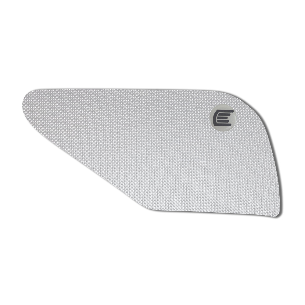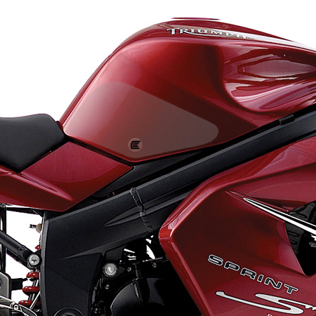 Eazi-Grip PRO - the non-abrasive high performance tank grips Triumph Sprint ST PRO Tank Grips includes Tank Grips, left and right side, clear IPA cleaner Fitting Instructions Manufactured in the UK from high quality polyurethane, these traction pads are designed to be applied to the fuel tank recesses next to the riders knees and come pre-cut to size. High quality polyurethane with low profile, circular embossed surface Provides outstanding feel and movement but with superior grip when needed Suitable for race, track days and more enthusiastic road riders Non-abrasive - kind to riders leathers Cut to size - quick and easy to apply - instructions and IPA surface cleaner provided Road and track use only - not suitable for off-road use Application Peel back part of the release liner then press the tank grip firmly onto the tank and slowly peel back the liner whilst applying the grip. Push down the surface and take care not to trap air bubbles as you go. Allow 48 hours for the adhesive to fully bond before using the grips. Use an IPA cleaner to prepare surface area NO methylated spirits/petrol/lighter fluid etc. as these leave behind a thin, greasy residue. For best results ensure prepared surface is above 10oC. Also available from our store - Eazi-Grip EVO Tank Grips Eazi-Grip EVO tank grips have a soft but durable domed surface that is very easy to grip, giving the rider increased control with minimal effort, thereby reducing fatigue and and reducing wear to the riders leathers or clothing. Eazi-Grip EVO Tank Grips tend to suit the less aggressive rider (primarily road and occassional track use) and are a great alternative to more abrasive, higher priced tank grips available on the market. Designed, developed and manufactured in the U.K. Hint: Black grips look better than clear on a black tank, where clear grips can appear a little blue. Black grips can also look better than clear on a pure white tank, where clear grips can appear a little yellow. Clear grips are optimised for colours other than black and pure white. NB. Clear grips are supplied with a pink-coloured adhesive liner which makes the grips appear pink until the liner is removed. Suitable for Triumph Sprint ST 2005 - 2010, Sprint GT 2010 - 2015 models only Part No. PRO805CL