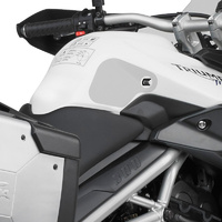 Eazi-Grip PRO - the non-abrasive high performance tank grips Triumph Tiger 800 XC XR PRO Tank Grips includes Tank Grips, left and right side, clear IPA cleaner Fitting Instructions Manufactured in the UK from high quality polyurethane, these traction pads are designed to be applied to the fuel tank recesses next to the riders knees and come pre-cut to size. High quality polyurethane with low profile, circular embossed surface Provides outstanding feel and movement but with superior grip when needed Suitable for race, track days and more enthusiastic road riders Non-abrasive - kind to riders leathers Cut to size - quick and easy to apply - instructions and IPA surface cleaner provided Road and track use only - not suitable for off-road use Application Peel back part of the release liner then press the tank grip firmly onto the tank and slowly peel back the liner whilst applying the grip. Push down the surface and take care not to trap air bubbles as you go. Allow 48 hours for the adhesive to fully bond before using the grips. Use an IPA cleaner to prepare surface area NO methylated spirits/petrol/lighter fluid etc. as these leave behind a thin, greasy residue. For best results ensure prepared surface is above 10oC. Also available from our store - Eazi-Grip EVO Tank Grips Eazi-Grip EVO tank grips have a soft but durable domed surface that is very easy to grip, giving the rider increased control with minimal effort, thereby reducing fatigue and and reducing wear to the riders leathers or clothing. Eazi-Grip EVO Tank Grips tend to suit the less aggressive rider (primarily road and occassional track use) and are a great alternative to more abrasive, higher priced tank grips available on the market. Designed, developed and manufactured in the U.K. Hint: Black grips look better than clear on a black tank, where clear grips can appear a little blue. Black grips can also look better than clear on a pure white tank, where clear grips can appear a little yellow. Clear grips are optimised for colours other than black and pure white. NB. Clear grips are supplied with a pink-coloured adhesive liner which makes the grips appear pink until the liner is removed. Suitable for Triumph Tiger 800 XC XR 2015 - current models only Part No. PRO808CL