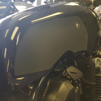 Eazi-Grip PRO - the non-abrasive high performance tank grips Yamaha XJR1300 PRO Tank Grips includes Tank Grips, left and right side, black IPA cleaner Fitting Instructions Manufactured in the UK from high quality polyurethane, these traction pads are designed to be applied to the fuel tank recesses next to the riders knees and come pre-cut to size. High quality polyurethane with low profile, circular embossed surface Provides outstanding feel and movement but with superior grip when needed Suitable for race, track days and more enthusiastic road riders Non-abrasive - kind to riders leathers Cut to size - quick and easy to apply - instructions and IPA surface cleaner provided Road and track use only - not suitable for off-road use Application Peel back part of the release liner then press the tank grip firmly onto the tank and slowly peel back the liner whilst applying the grip. Push down the surface and take care not to trap air bubbles as you go. Allow 48 hours for the adhesive to fully bond before using the grips. Use an IPA cleaner to prepare surface area NO methylated spirits/petrol/lighter fluid etc. as these leave behind a thin, greasy residue. For best results ensure prepared surface is above 10oC. Also available from our store - Eazi-Grip EVO Tank Grips Eazi-Grip EVO tank grips have a soft but durable domed surface that is very easy to grip, giving the rider increased control with minimal effort, thereby reducing fatigue and and reducing wear to the riders leathers or clothing. Eazi-Grip EVO Tank Grips tend to suit the less aggressive rider (primarily road and occassional track use) and are a great alternative to more abrasive, higher priced tank grips available on the market. Designed, developed and manufactured in the U.K. Hint: Black grips look better than clear on a black tank, where clear grips can appear a little blue. Black grips can also look better than clear on a pure white tank, where clear grips can appear a little yellow. Clear grips are optimised for colours other than black and pure white. Suitable for Yamaha XJR1300 2015 - 2017 models only Part No. PRO926BL