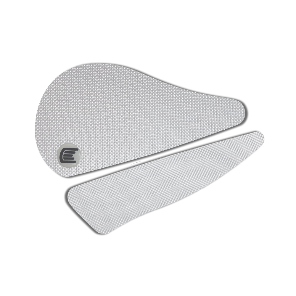 Eazi-Grip PRO - the non-abrasive high performance tank grips Yamaha YZF-R1 PRO Tank Grips includes Tank Grips, left and right side, clear IPA cleaner Fitting Instructions Manufactured in the UK from high quality polyurethane, these traction pads are designed to be applied to the fuel tank recesses next to the riders knees and come pre-cut to size. High quality polyurethane with low profile, circular embossed surface Provides outstanding feel and movement but with superior grip when needed Suitable for race, track days and more enthusiastic road riders Non-abrasive - kind to riders leathers Cut to size - quick and easy to apply - instructions and IPA surface cleaner provided Road and track use only - not suitable for off-road use Application Peel back part of the release liner then press the tank grip firmly onto the tank and slowly peel back the liner whilst applying the grip. Push down the surface and take care not to trap air bubbles as you go. Allow 48 hours for the adhesive to fully bond before using the grips. Use an IPA cleaner to prepare surface area NO methylated spirits/petrol/lighter fluid etc. as these leave behind a thin, greasy residue. For best results ensure prepared surface is above 10oC. Also available from our store - Eazi-Grip EVO Tank Grips Eazi-Grip EVO tank grips have a soft but durable domed surface that is very easy to grip, giving the rider increased control with minimal effort, thereby reducing fatigue and and reducing wear to the riders leathers or clothing. Eazi-Grip EVO Tank Grips tend to suit the less aggressive rider (primarily road and occassional track use) and are a great alternative to more abrasive, higher priced tank grips available on the market. Designed, developed and manufactured in the U.K. Hint: Black grips look better than clear on a black tank, where clear grips can appear a little blue. Black grips can also look better than clear on a pure white tank, where clear grips can appear a little yellow. Clear grips are optimised for colours other than black and pure white. NB. Clear grips are supplied with a pink-coloured adhesive liner which makes the grips appear pink until the liner is removed. Suitable for Yamaha YZF-R1 2002 - 2003 models only Part No. PRO901CL