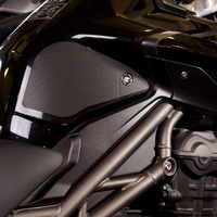 Eazi-Grip PRO - the non-abrasive high traction tank grips Triumph Tiger Explorer 1200 XC XR PRO Tank Grips includes Tank Grips, left and right side, black IPA cleaner Fitting Instructions Manufactured in the UK from high quality polyurethane, these traction pads are designed to be applied to the fuel tank recesses next to the riders knees and come pre-cut to size. High quality polyurethane with low profile, circular embossed surface Provides outstanding feel and movement but with superior grip when needed Suitable for race, track days and more enthusiastic road riders Non-abrasive - kind to riders leathers Cut to size - quick and easy to apply - instructions and IPA surface cleaner provided Road and track use only - not suitable for off-road use Application Peel back part of the release liner then press the tank grip firmly onto the tank and slowly peel back the liner whilst applying the grip. Push down the surface and take care not to trap air bubbles as you go. Allow 48 hours for the adhesive to fully bond before using the grips. Use an IPA cleaner to prepare surface area NO methylated spirits/petrol/lighter fluid etc. as these leave behind a thin, greasy residue. For best results ensure prepared surface is above 10oC. Also available from our store - Eazi-Grip EVO Tank Grips Eazi-Grip EVO tank grips have a soft but durable domed surface that is very easy to grip, giving the rider increased control with minimal effort, thereby reducing fatigue and and reducing wear to the riders leathers or clothing. Eazi-Grip EVO Tank Grips tend to suit the less aggressive rider (primarily road and occassional track use) and are a great alternative to more abrasive, higher priced tank grips available on the market. Designed, developed and manufactured in the U.K. Hint: Black grips look better than clear on a black tank, where clear grips can appear a little blue. Black grips can also look better than clear on a pure white tank, where clear grips can appear a little yellow. Clear grips are optimised for colours other than black and pure white. Suitable for Triumph Tiger Explorer 1200 XC XR 2012 - current models only Part No. PRO809BL