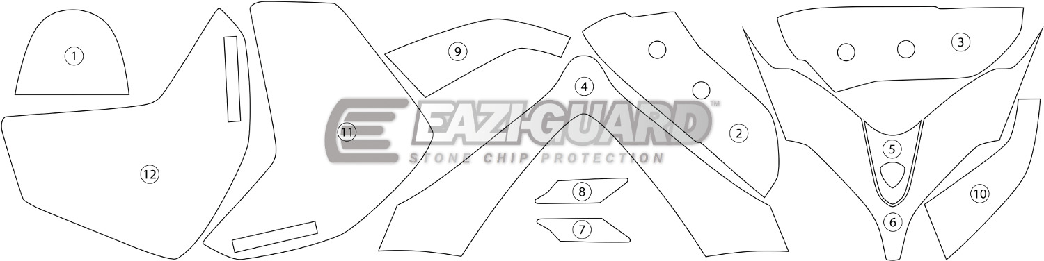 Race Developed Stone Chip Paint Protection from Eazi-Guard Ducati Multistrada 950 Stone Chip Paint Protection    includes Pre-cut stone chip paint protection film Application solution Application tool Fitting Instructions  Eazi-Guard stone chip protection tape is an Ultra-Thin, Ultra-Tough, polyurethane protection film, designed to protect your bike and virtually eliminate damage. The unique properties of our Polyurethane Protection tape enable it to disperse the impact energy of gravel and small stones, bouncing them off and leaving your bodywork untouched beneath. Eazi-Guard uses a specially formulated acrylic adhesive which can be safely removed without residue, leaving your bike looking as great as the day you bought it. Eazi-Guard is supplied in a pre-cut kit format, has high elasticity, meaning that it is extremely conformable around even tight radii and compound curves, making it easy to fit. Gloss finish suited to bikes with gloss paint Specifically cut to size for a perfect fit Manufactured from high quality clear polyurethane Extremely pliant and conformable Designed to protect your bike and virtually eliminate damage Ideal for road and track bikes Detailed fitting instructions provided Developed and manufactured in the U.K. Suitable for Ducati Multistrada 950 2017 - current models only Part No. GUARDDUC009