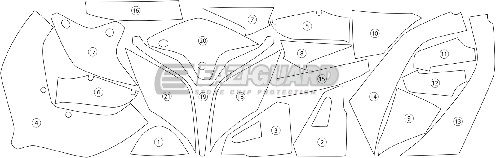 Race Developed Stone Chip Paint Protection from Eazi-Guard Ducati Panigale V4 Stone Chip Paint Protection (Matte)    includes Pre-cut stone chip paint protection film Application solution Application tool Fitting Instructions  Eazi-Guard stone chip protection tape is an Ultra-Thin, Ultra-Tough, polyurethane protection film, designed to protect your bike and virtually eliminate damage. The unique properties of our Polyurethane Protection tape enable it to disperse the impact energy of gravel and small stones, bouncing them off and leaving your bodywork untouched beneath. Eazi-Guard uses a specially formulated acrylic adhesive which can be safely removed without residue, leaving your bike looking as great as the day you bought it. Eazi-Guard is supplied in a pre-cut kit format, has high elasticity, meaning that it is extremely conformable around even tight radii and compound curves, making it easy to fit. Matte finish suited to bikes with matte paint Specifically cut to size for a perfect fit Manufactured from high quality clear polyurethane Extremely pliant and conformable Designed to protect your bike and virtually eliminate damage Ideal for road and track bikes Detailed fitting instructions provided Developed and manufactured in the U.K. Suitable for Ducati Panigale V4 2018 - current models only Part No. GUARDDUC008M