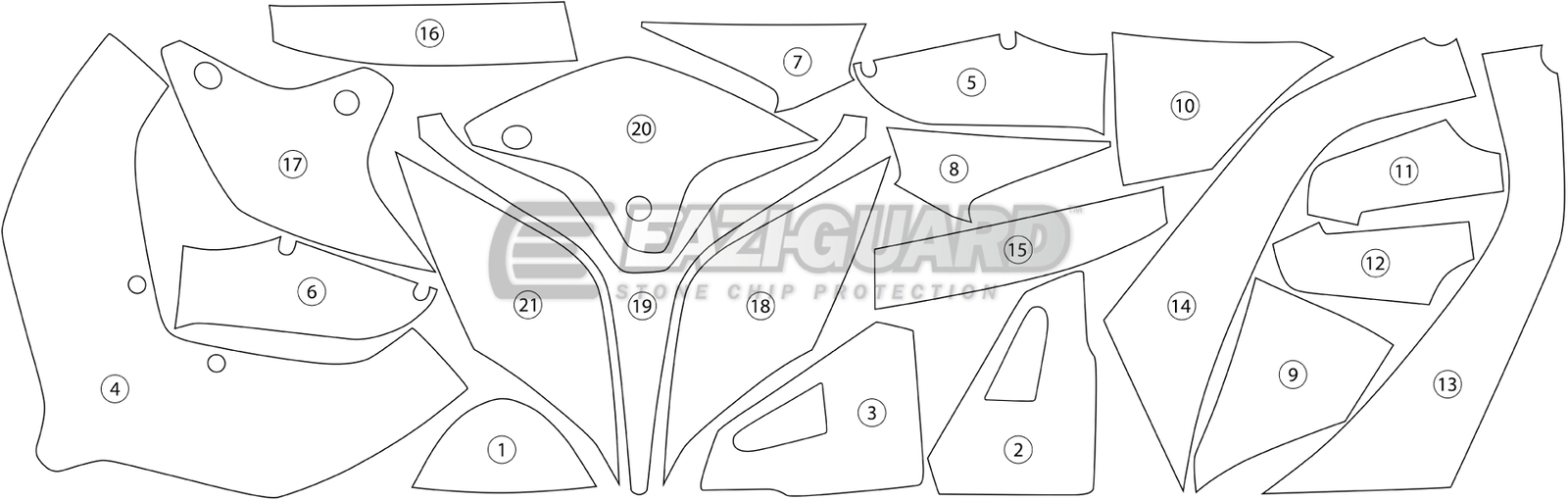 Race Developed Stone Chip Paint Protection from Eazi-Guard Ducati Panigale V4 Stone Chip Paint Protection    includes Pre-cut stone chip paint protection film Application solution Application tool Fitting Instructions  Eazi-Guard stone chip protection tape is an Ultra-Thin, Ultra-Tough, polyurethane protection film, designed to protect your bike and virtually eliminate damage. The unique properties of our Polyurethane Protection tape enable it to disperse the impact energy of gravel and small stones, bouncing them off and leaving your bodywork untouched beneath. Eazi-Guard uses a specially formulated acrylic adhesive which can be safely removed without residue, leaving your bike looking as great as the day you bought it. Eazi-Guard is supplied in a pre-cut kit format, has high elasticity, meaning that it is extremely conformable around even tight radii and compound curves, making it easy to fit. Gloss finish suited to bikes with gloss paint Specifically cut to size for a perfect fit Manufactured from high quality clear polyurethane Extremely pliant and conformable Designed to protect your bike and virtually eliminate damage Ideal for road and track bikes Detailed fitting instructions provided Developed and manufactured in the U.K. Suitable for Ducati Panigale V4 2018 - current models only Part No. GUARDDUC008
