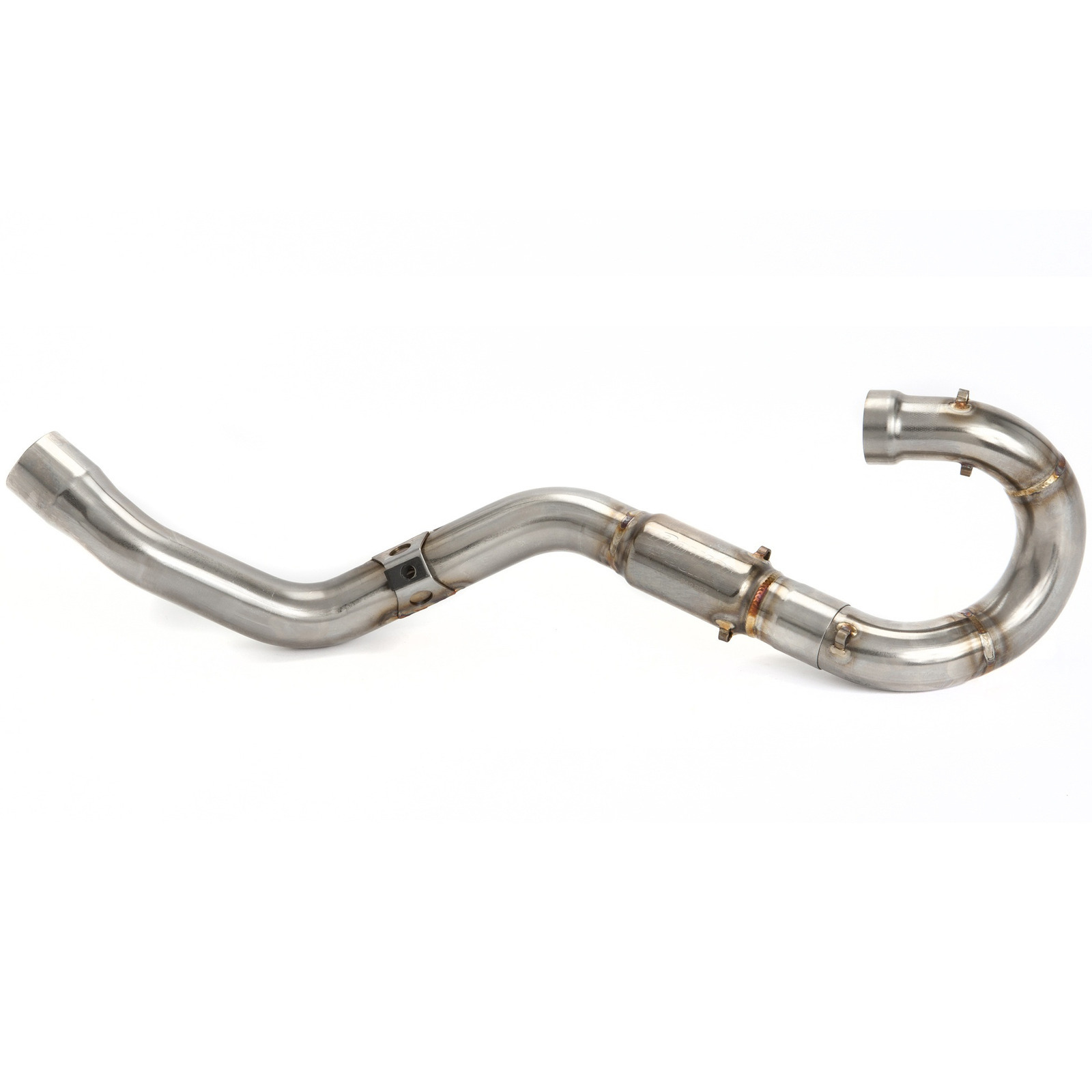 The redesigned PowerBomb is a four-stroke header that incorporates FMF's patented PowerBomb module at a precise location in the initial stage of the header. By positioning this Bomb at a key point in the system, increased performance and flow is achieved through the expansion and contraction of exhaust sonics through the system. Result is a flow increase of nearly 10%! The outer chamber in the Powerbomb allows the air to expand, cool and ramp back up at a higher velocity. Additionally, the PowerBomb is a "pre-muffler" of sorts which helps to lower the bikes sound output by providing more sound absorbing surface area for the sound medium (exhaust gases). On some models, you can choose between a moto or supercross version. The supercross version is designed for more low to mid-range power where the moto version is focused in the mid to upper RPM range