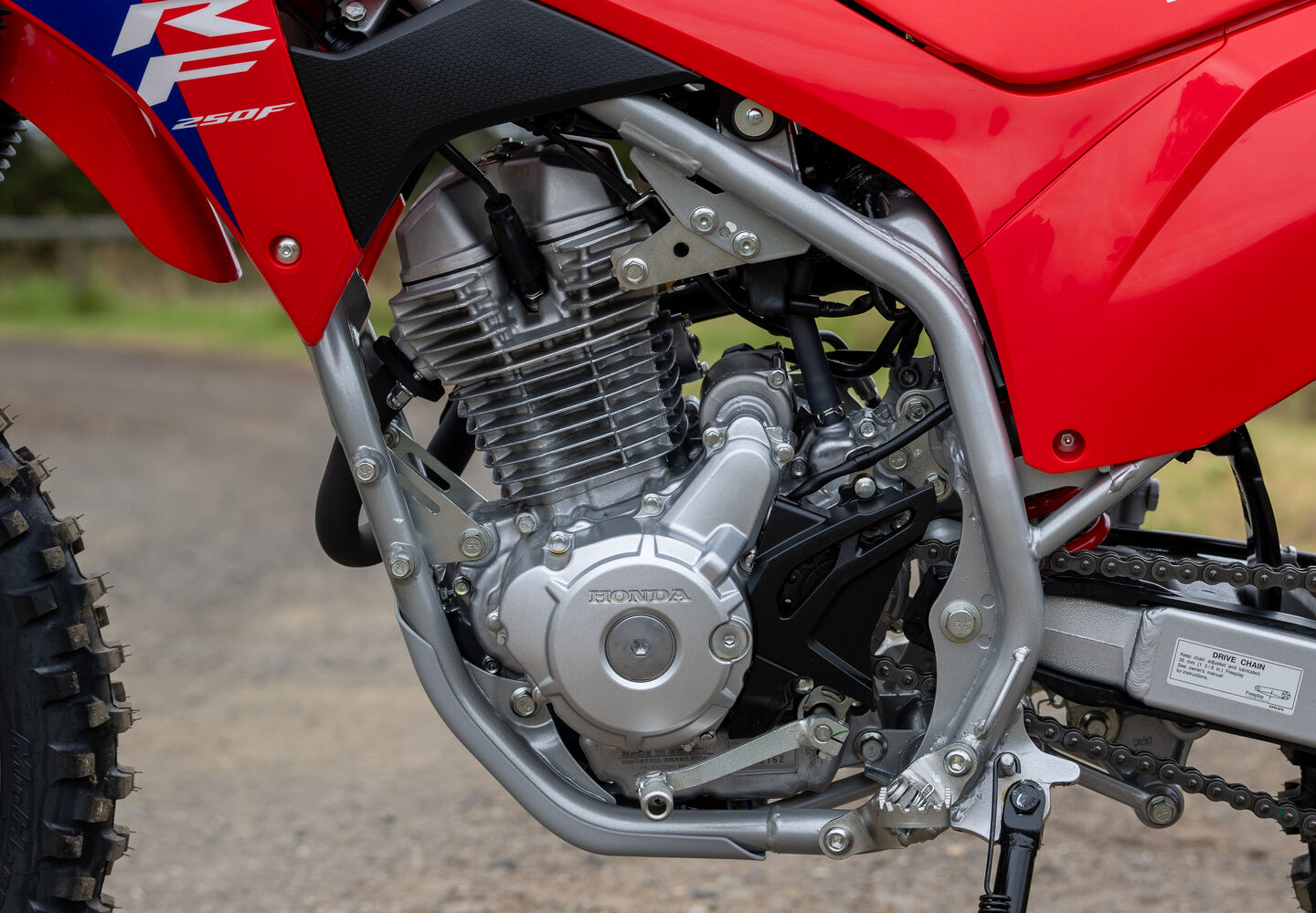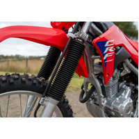 The CRF250F's tubular-steel twin-spar frame is both light and tough and brings improved handling - a benefit that will be appreciated by all riders.