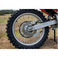 The combination of front and rear disc brakes give you crisp, balanced and powerful braking at both ends. The petal-disc design is similar to the ones used on MX bikes, running cooler and reducing unsprung weight.