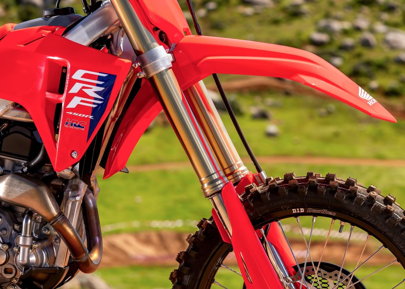 Superior handling starts with an exceptional frame, and the CRF450R delivers. The updated chassis features optimised rigidity and reduces weight, while enhancing responsiveness and stability. Feel the difference in comfort and performance as you take on the track in front of you.