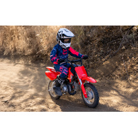 Z50, QR50, XR50 sound familiar? Today’s kids now look forward to building the same memories on board the CRF50F. Engineered from DNA that comes from the whole CRF family, good times are guaranteed on this entry level bike, from the first kick. With its reliable, four-stroke engine, tuned to deliver smooth, easy-to-use power. Its three-speed transmission uses an automatic clutch, so a rider learns to shift without worrying about stalling—a great lesson plan there. It even has an adjustable throttle limiter and keyed ignition, so you control who rides, when, and how much power the CRF50F puts out. The best start to riding you could get is on a CRF50F!