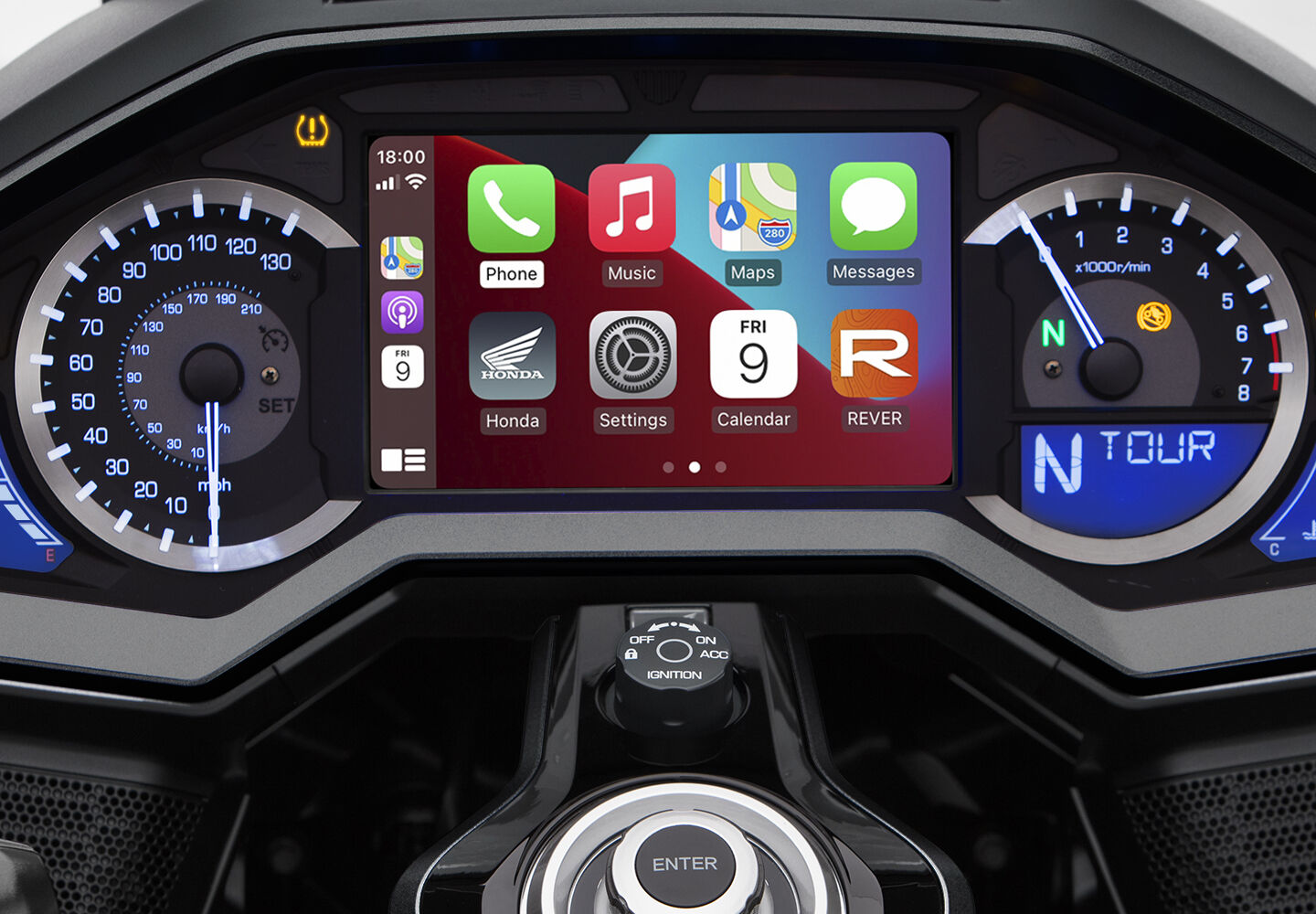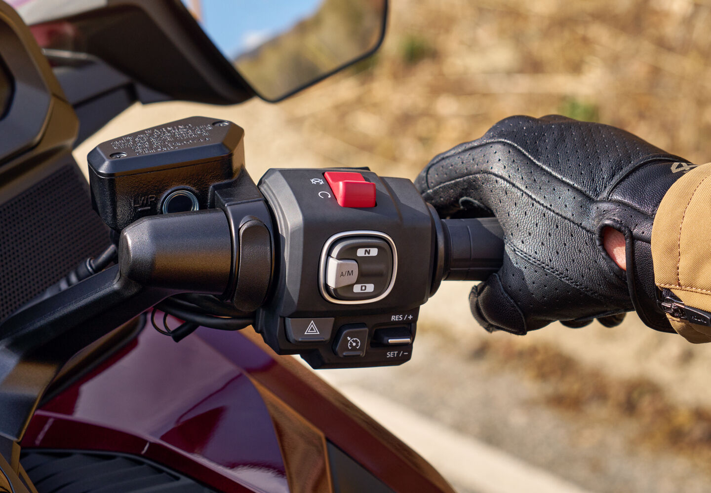 Set your pace, rest your wrist: Goldwing’s electronic Cruise Control locks in highway speed at the press of a button, letting the throttle-by-wire system do the work while you enjoy the ride.