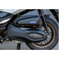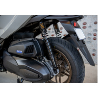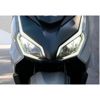 The bright LED headlights and taillight lead the Forza 350’s chiselled look. But they are not just about style, they ensure a big presence on the road day or night, improving visibility to other road users.