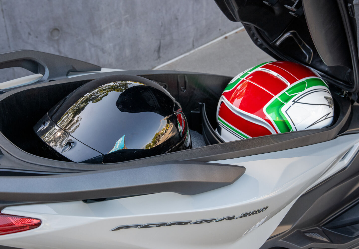 The Forza 350 has an excellent secure storage capacity that's essential for city life. Under-seat space for up to two full-face helmets (depending on size), so there's less to carry on once you're where you want to be.