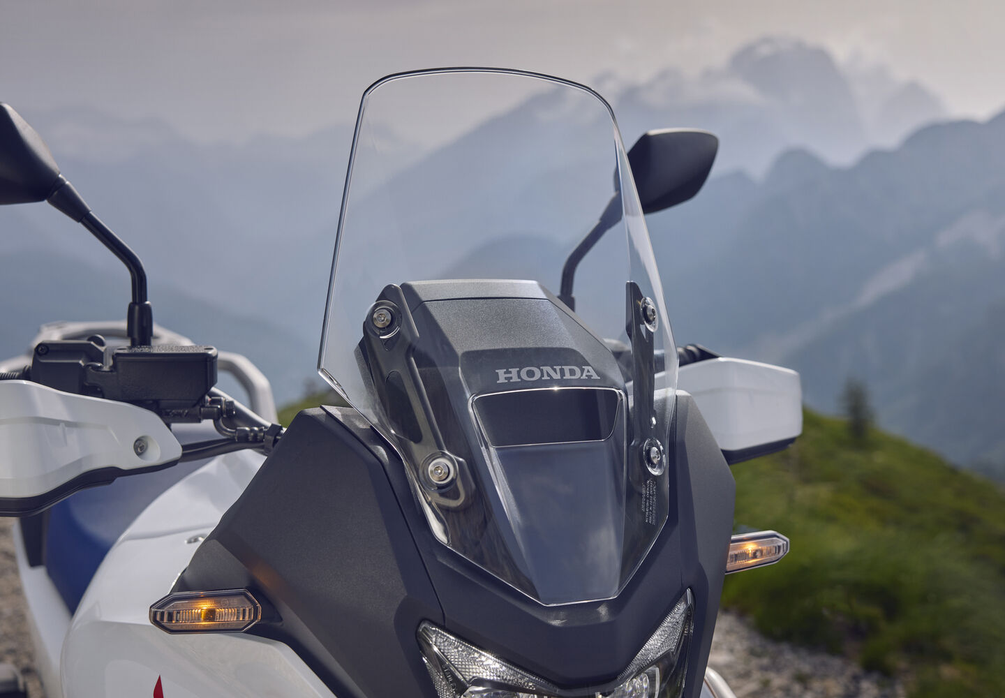 When you're on the road all day, minimising fatigue is key. Thanks to its new central intake duct, the Transalp channels high-speed airflow around the head area, ensuring a more relaxed and comfortable highway cruise. The aerodynamic fairing and screen boost stability and reduce wind noise at speed.