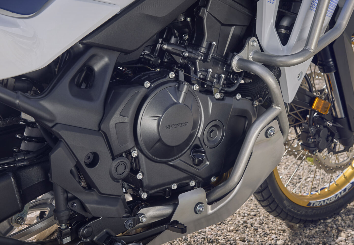 The cylinders for the Transalp are produced with Ni-SiC plating at the Kumamoto Factory in Japan. This advanced plating lowers friction and crankshaft weight, boosting power at high RPMs. The same plating technology is also used in the Fireblade, CRF450R, and F1 engines.