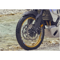 The front brake features dual 310mm "wave" discs, while the rear is equipped with a 1-pot calliper and a 256mm single disc. Ride with confidence, whether you're on paved roads or exploring unpaved paths.