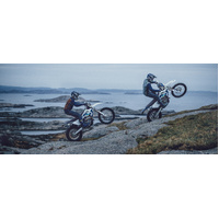 Electric start: Taken from the motocross range, the combined start/stop switch is located on the right side of the handlebar for easy, thumb-operated use. Not only simplifying the starting and stopping of the engine, but the removal of a designated stop only button from the handlebar reduces the risk of potential damage or activation in the event of a fall.