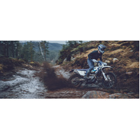 Engine: The current generation engine is designed for maximum power, which is delivered in a controllable way to suit all kinds of enduro riding. Inside, all major components and shaft arrangements are positioned close to the centre of gravity to reduce the effects of rotational inertia, which leads to agile handling. Positioned in the chassis to further centralize mass, the powerful 350 cc 4-stroke engine weighs just 28.8 kilograms.