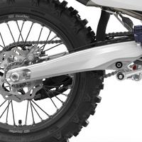 Swingarm: The swingarm is manufactured using a die-cast production process and designed with a calculated level of rigidity. To further complement and optimise the flex characteristics of the chassis, a 22 mm rear wheel axle is utilised. A durable chain slider is neatly integrated into the swingarm, ensuring uninterrupted forward momentum through deeply rutted corners.