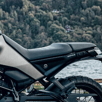 Handlebar: Offroad style handlebars and risers are fitted together with stylish, forged aluminium triple clamps. In keeping with the minimalistic look of the authentic design, the handlebar-mounted dashboard is a large 5'' TFT display, which shows essential information like speed, fuel level, riding mode and the selected gear.