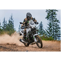 An Invitation to Genuine Adventure: Exploring the next dirt road is an opportunity for riding enjoyment thanks to a well-balanced chassis and light, straightforward handling. The well-thought-out riding position lends the KLE500 a natural feel whether standing or sitting, while seamless bodywork lets the rider move around freely. A rider-focused and highly controllable character makes the KLE500 the ideal choice for any long adventure ride.