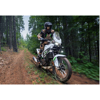 An Invitation to Genuine Adventure: Exploring the next dirt road is an opportunity for riding enjoyment thanks to a well-balanced chassis and light, straightforward handling. The well-thought-out riding position lends the KLE500 a natural feel whether standing or sitting, while seamless bodywork lets the rider move around freely. A rider-focused and highly controllable character makes the KLE500 the ideal choice for any long adventure ride.