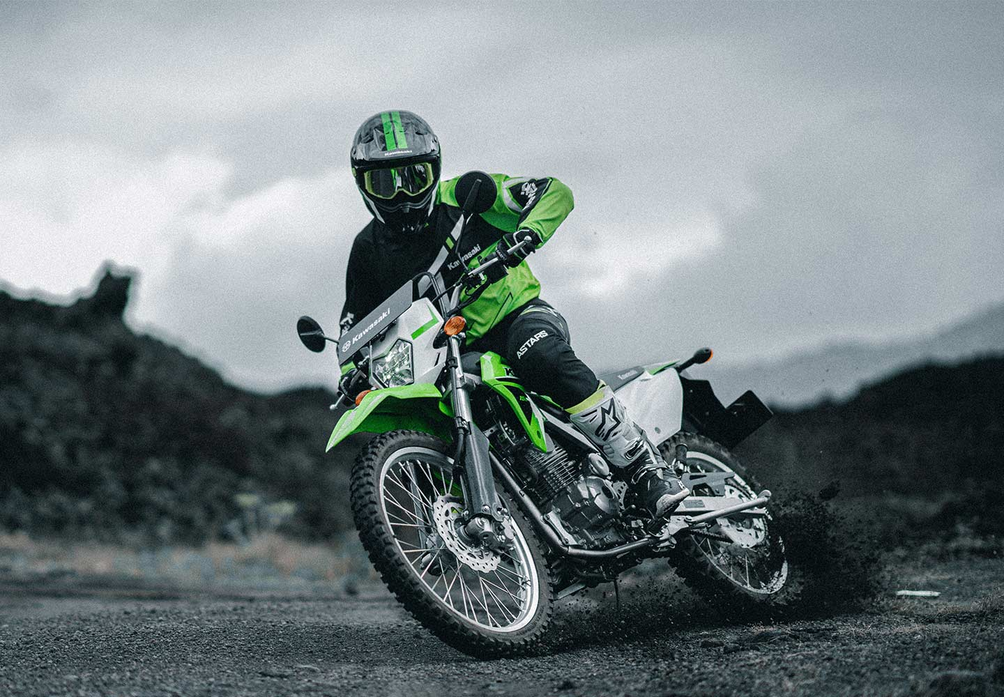The new KLX150 series offers riding fun in a variety of situations, from urban usage like city riding and commuting to off-road trail rides that excite the adventurous spirit. Its slim, lightweight chassis and reliable air-cooled engine are complemented by a powerful, stylish MX-inspired design reminiscent of a full-fledged enduro motorcycle, making it casually enjoyable for a wide range of riders.