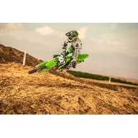 The KX85 motorcycle brings Kawasaki’s proven performance to the amateur ranks. Proportionate power of the 84 cc engine and race-ready technology grant young racers the championship-winning advantage they need to sharpen their skills.