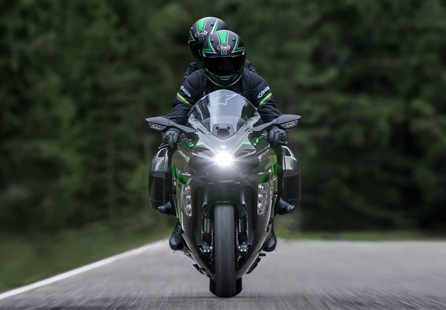 A unique combination of supercharged acceleration and long-distance comfort : Originally conceived to be the fastest sport tourer on the Autobahn, the Ninja H2 SX offers a unique riding experience. With supercharged acceleration and the equipment to cover long distances in comfort, Kawasaki’s supercharged sport tourer will have riders smiling in their helmets as they eat up the miles.