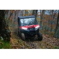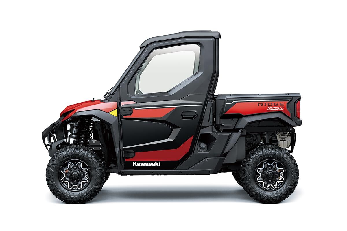 - EXTERIOR - Premium Automotive-Style Exterior: Complementing its rugged, sporty styling, the RIDGE’s premium exterior includes painted fenders and all-LED lighting. The front headlights’ line-type LED position lights create a fierce expression, backed up by a large aluminium Kawasaki emblem on the front grille and a solid-looking steel front bumper.