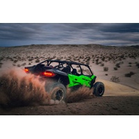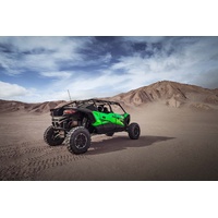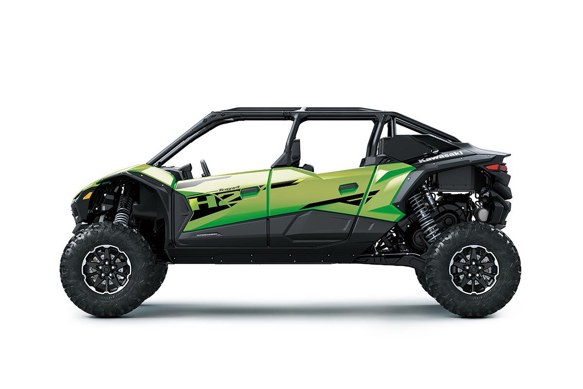 MAXIMUM IMPACT: EXTERIOR: As Kawasaki’s new TERYX flagship, it was important that the TERYX4 H2 look the part. Its sleek, low-profile design, wide stance and aggressive front-end are complemented by luxuriously painted Lime Green bodywork—a head-turning combination that conveys both its high level of performance as well as its high-grade build.