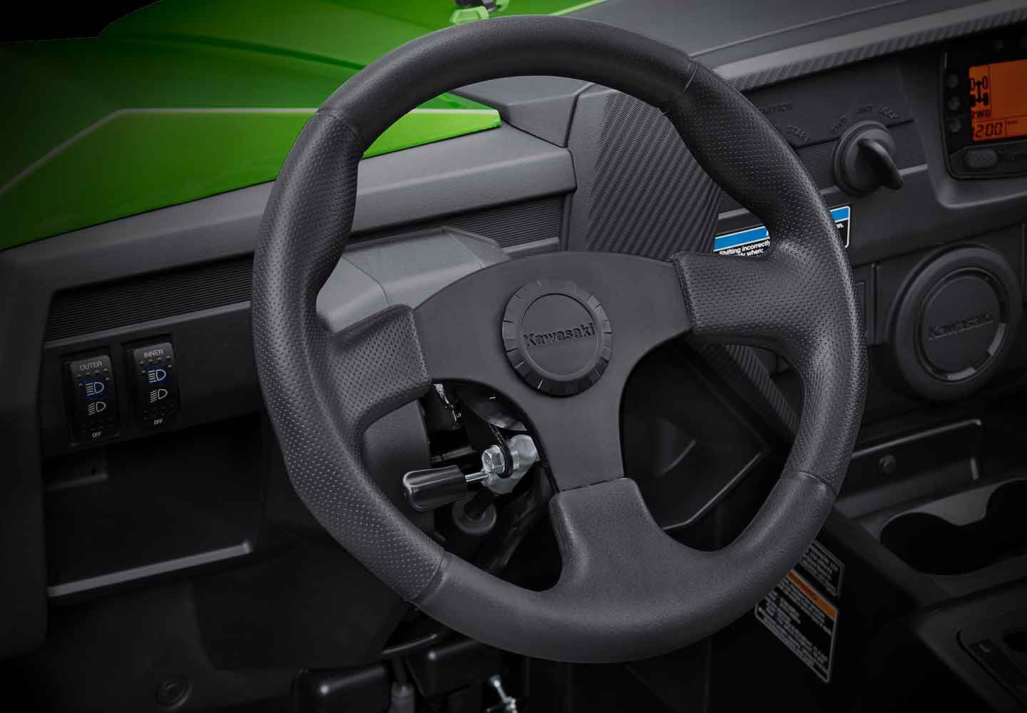 - COCKPIT - Comfortable & Roomy: Teryx4 side x sides feature stadium-style seating with plenty of head, shoulder and leg room. Adjustable tilt steering wheel conforms to your specific needs while automotive-style doors provide easy in/out access and added protection from external debris.