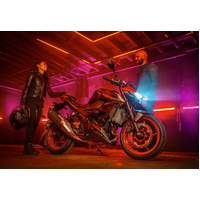 All eyes are on you when riding the all-new Z500 supernaked. With distinctive bodywork and a powerful 451 cc engine, this aggressively styled streetfighter is for those who are not afraid to be seen. The Z500 provides the ideal platform for a wide range of riders to put their true colours on display.