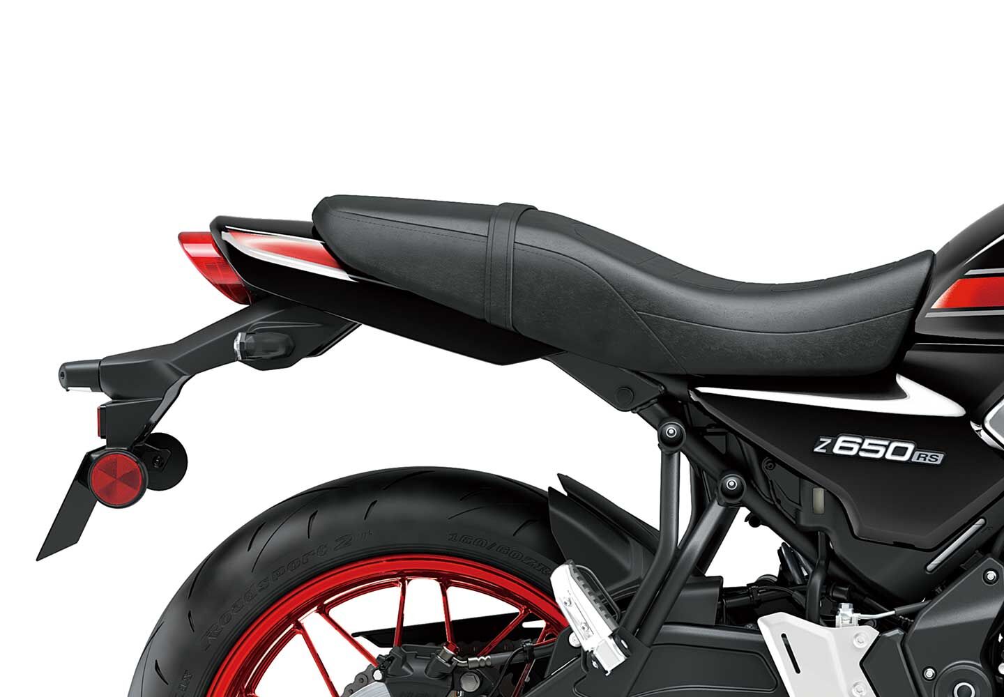 - TAIL - Compact, horizontal tail: Compared to the upswept tail of the Z650, the tail of the Z650RS traces a horizontal line, contributing to the bike’s flat stance. The tail – shorter than that of the Z900RS, which reinforces the light, casual styling theme – is adorned with an LED taillight. An original-design seat adds to the retro sport image.