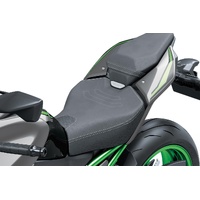 - SEAT - High-Quality Seat: Slim at the front and wide at the rear, the sporty front seat’s shape has been updated with thicker urethane in its rear portion offering increased riding comfort. The corners on the left and right sides are rounded off to offer more comfort to the legs when seated and to facilitate reaching the ground. In addition to allowing the rider to shift around and take a variety of riding positions when cruising, the seat’s flatter new shape also enables the rider to more easily shift their weight during sport riding.