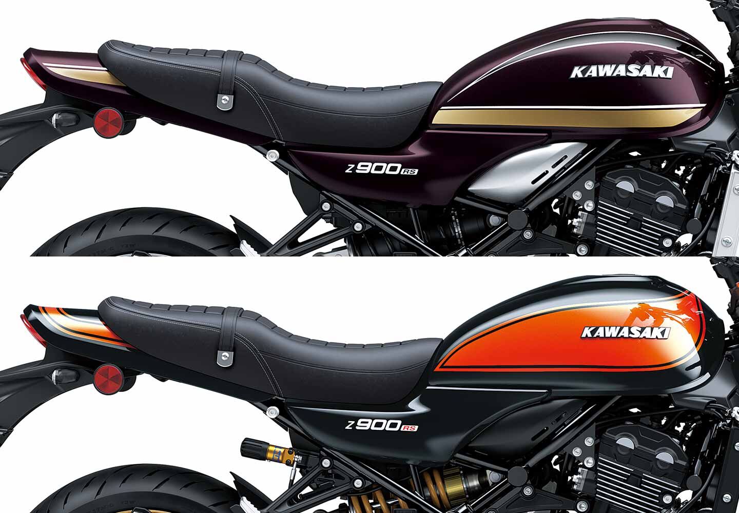 - COLOURWAYS - Colourways That Further Emphasise the Retro Sport Image: In addition to a choice of two different models (Z900RS and Z900RS SE), riders will be thrilled with highly distinct retro sport images created by the colourways available. The standard model is available in a Candy Tone Red colour scheme inspired by 1970s Z models. The SE Model adopts a vivid Fireball pattern further enhanced by its gold-coloured suspension components for a truly standout appearance.