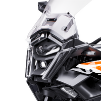 LED Headlight: Turning night to day, an all-new LED headlight unit takes center position on the KTM 1390 SUPER ADVENTURE range. Not only does this provide the KTM 1390 SUPER ADVENTURE with a fresh signature stare, but it also illuminates the road ahead with new cornering lights lighting up the bends with a broader illumination.