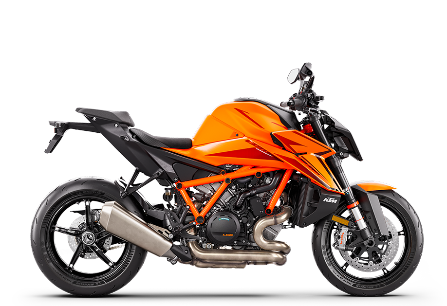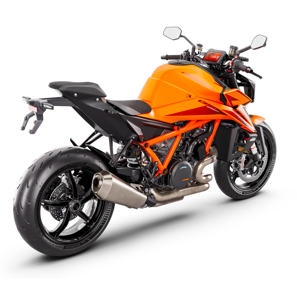 Engine: Boasting the latest version of the bellowing LC8 V-twin engine, the KTM 1390 SUPER DUKE R is a torque-hungry, epically powerful, and exciting BEAST. With a near 1:1 power-to-weight ratio, a power output of 190 Hp, and 145 Nm of torque with a READY TO RACE weight of 200 kg - with EURO 5+ homologation - the KTM 1390 SUPER DUKE R turns the planet on its axis rather than riding upon it.
