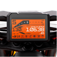 Track Mode: Dare to choose TRACK Mode, and the KTM 1390 SUPER DUKE R goes from a rip-roaring street fiend to an all-out track destroyer. The readability of the TFT is improved, icons and key data displayed larger, and any unnecessary secondary information is removed from view. Here, riders can also toggle Anti-wheelie on or off, with Launch Control available for the perfect start off the grid. Naturally, no cruise control and no KTMconnect are available in this Mode - Because in TRACK Mode, cruising is not an option.