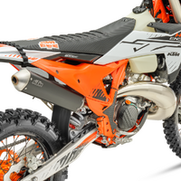 Ergonomics: The KTM EXC range features a rider-focussed body-position triangle, providing improved knee contact - especially when standing on the pegs - with improved gripping surfaces all around. With the plastics working to expel mud buildup in wet, muddy conditions, a flat seat profile with a high grip seat cover providing exceptional rider movement and control, and a polyamide-reinforced aluminum subframe providing unmatched rider feel and feedback, your only concern is navigating the terrain ahead of you.