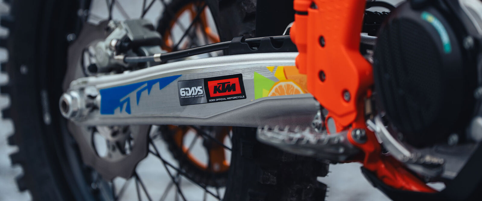 Top-shelf Componentry: The first KTM bearing the 6DAYS name tore onto the scene way back in 1996. Almost 30 years later, we're still keeping that legacy alive. All KTM 6DAYS models receive the full 6DAYS treatment, from machined orange anodized triple clamps, right down to a solid rear brake disc. Each and every element on a 6DAYS model is specifically chosen for the job at hand, stamped with a coveted 6DAYS logo, and let loose to dominate the field.