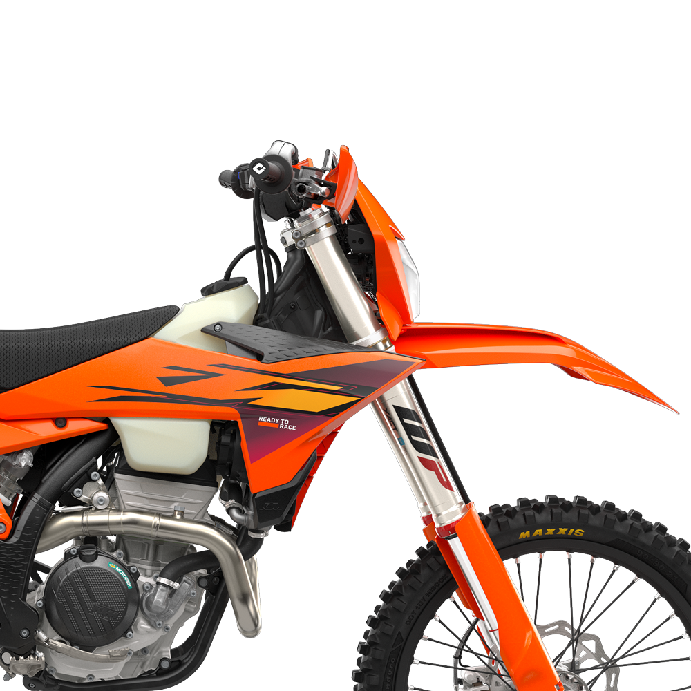 Adjustability: Getting READY TO RACE has never been easier. The KTM Enduro range boasts a tool-free suspension setup at both ends. At the rear, our legendary, race-winning PDS technology features hand-adjustable dual compression controls, allowing riders to adjust high- and low-speed settings in a matter of seconds. On the front, the forks are also easily adjusted thanks to hand-adjustable clickers on the bottom of the fork shoe and on the fork top cap, making changing settings on the fly as easy as twisting the throttle.