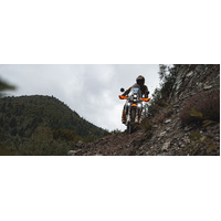 Offroad ABS: The KTM 390 ADVENTURE X makes easy work of gravel tracks thanks in part to its low center of gravity, nimble handling, and 19" front wheel. However, its KTM's proven Offroad ABS technology allows riders to use full braking power in the dirt without compromising on fun.