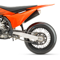 Footpegs: The KTM 450 SMR features compact footpegs designed for precision and performance. Their reduced surface area minimizes the chance of hooking on track curbs, while enhancing control during deep lean angles, giving riders the confidence to push harder through every corner.
