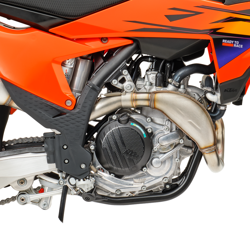 Absolute Control: The KTM 450 SMR frame is built for riders who demand sharp handling and full control. Its refined flex characteristics let you carve berms, launch jumps, and tackle technical terrain with confidence. A streamlined rear shock mount boosts stability and traction, while optimized engine mounts and wall thickness ensure a balanced, responsive feel from front to back.