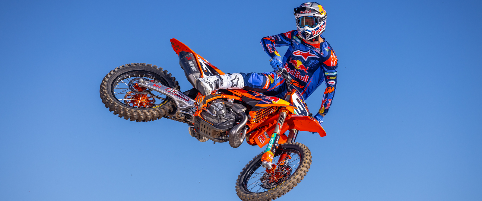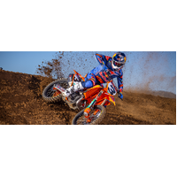 New WP PRO Suspension: The 2026 KTM SX and SX-F range has an WP XACT AER PRO 7548 fork and WP XACT PRO 8950 rear shock. This means you'll be lining up at the setting gate with the ultimate set-up, reduced weight, pristine weight distribution and acute responsiveness.